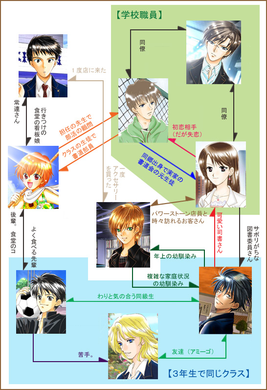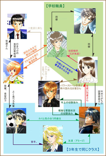 さてさて、何となく気が向いたので、ウチのキャラ達の相関図を作成してみました。
