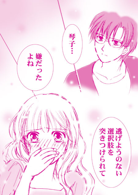 自分のために凄く嫌なことを受け入れるしかなかった琴ちゃんは、いわば最大の被害者。そんな彼女を怒るなんて以ての外だし、寧ろ自分は心底いたわらなければいけない立場だと思ったのでした。